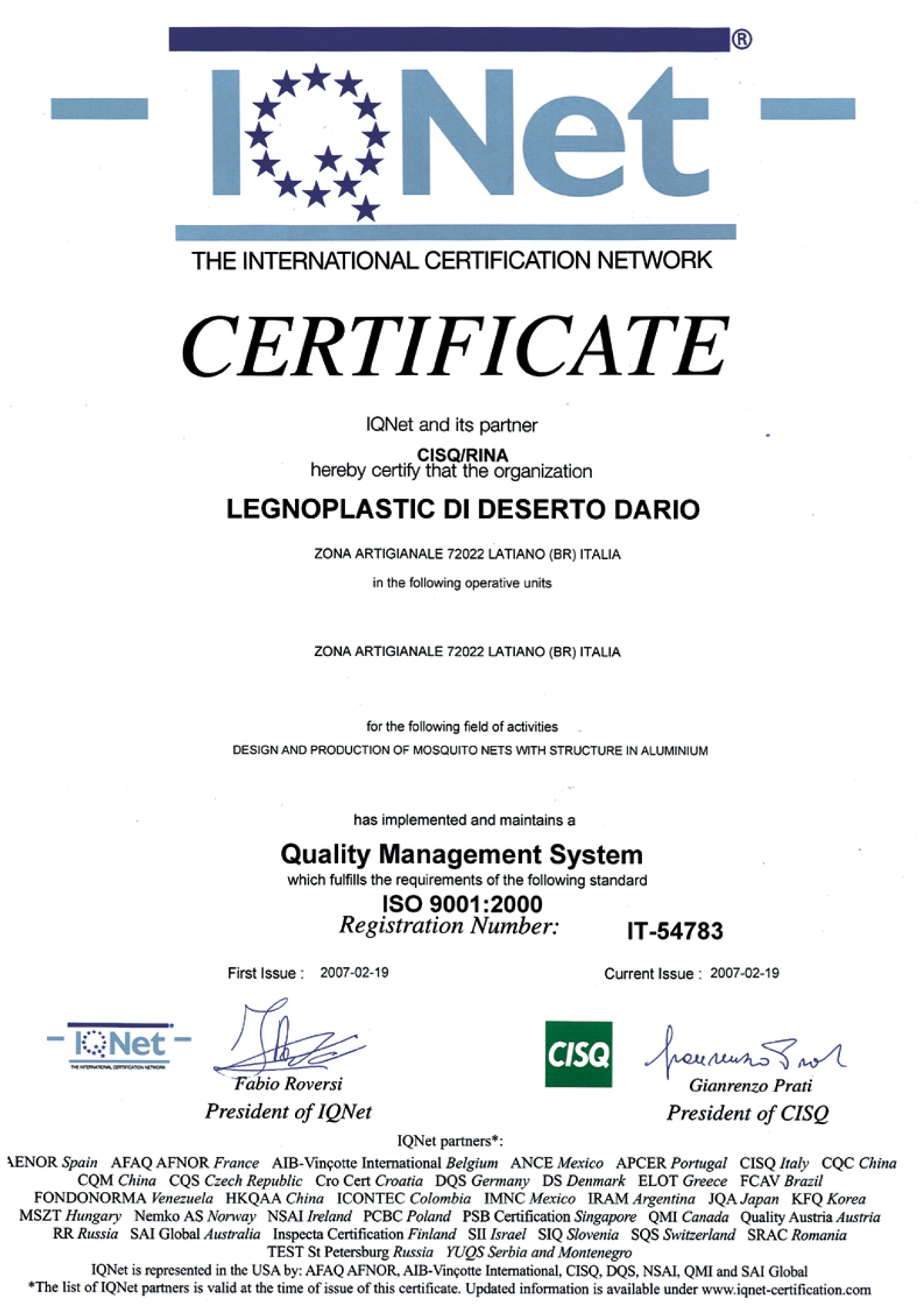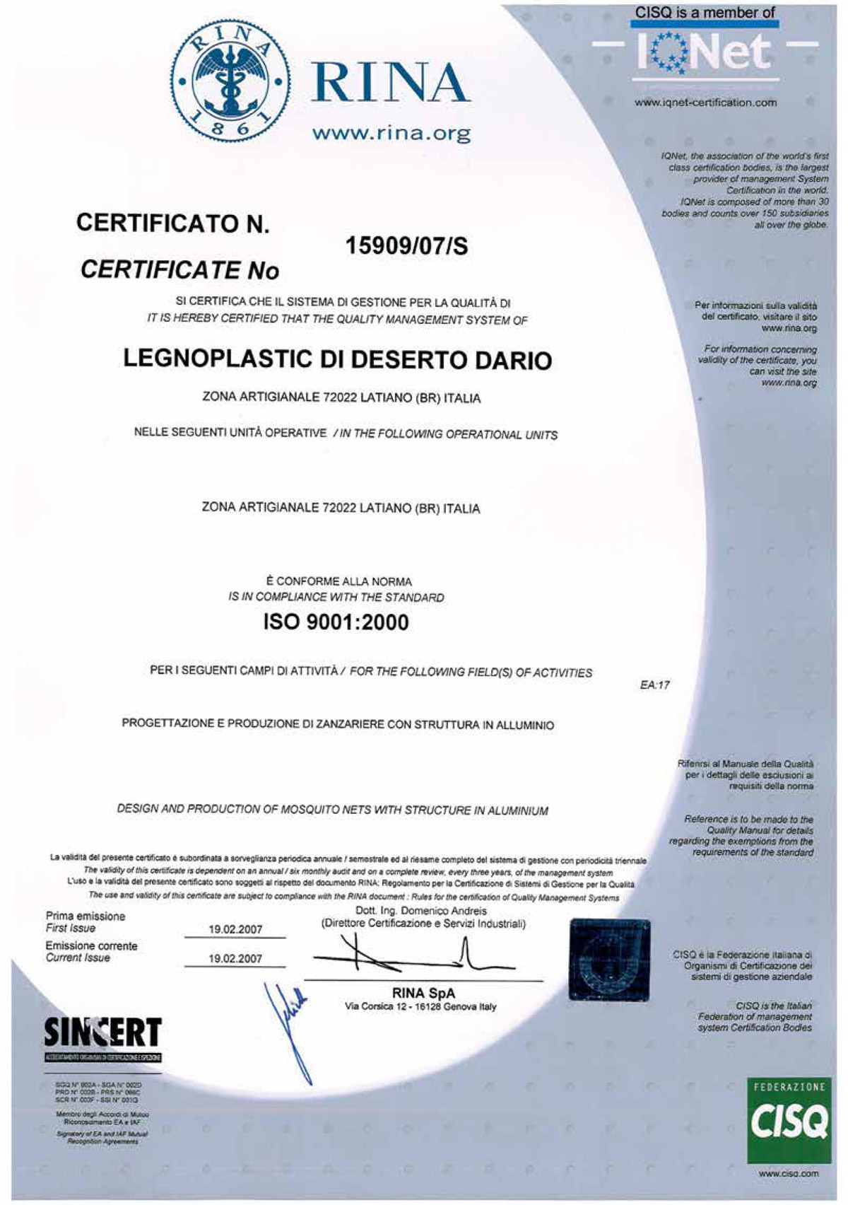 LEGNOPLASTIC, azienda certificata.