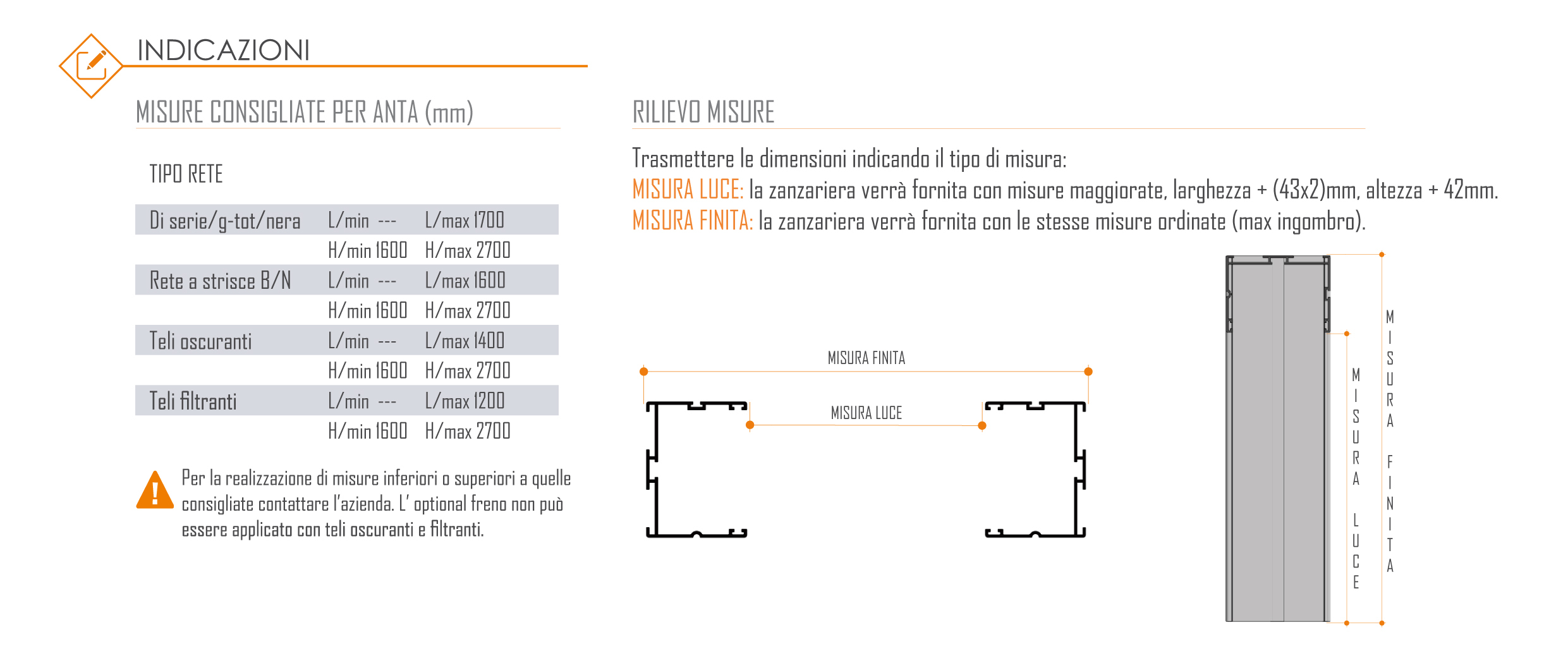 Inoltre l’assenza di rivettatura ai bordi e le guide con spazzolino antivento, permettono, in caso di fuoriuscita della rete, il riposizionamento della stessa nella giusta posizione con un semplice gesto di apertura/chiusura della zanzariera, garantendone una maggiore durata nel tempo.