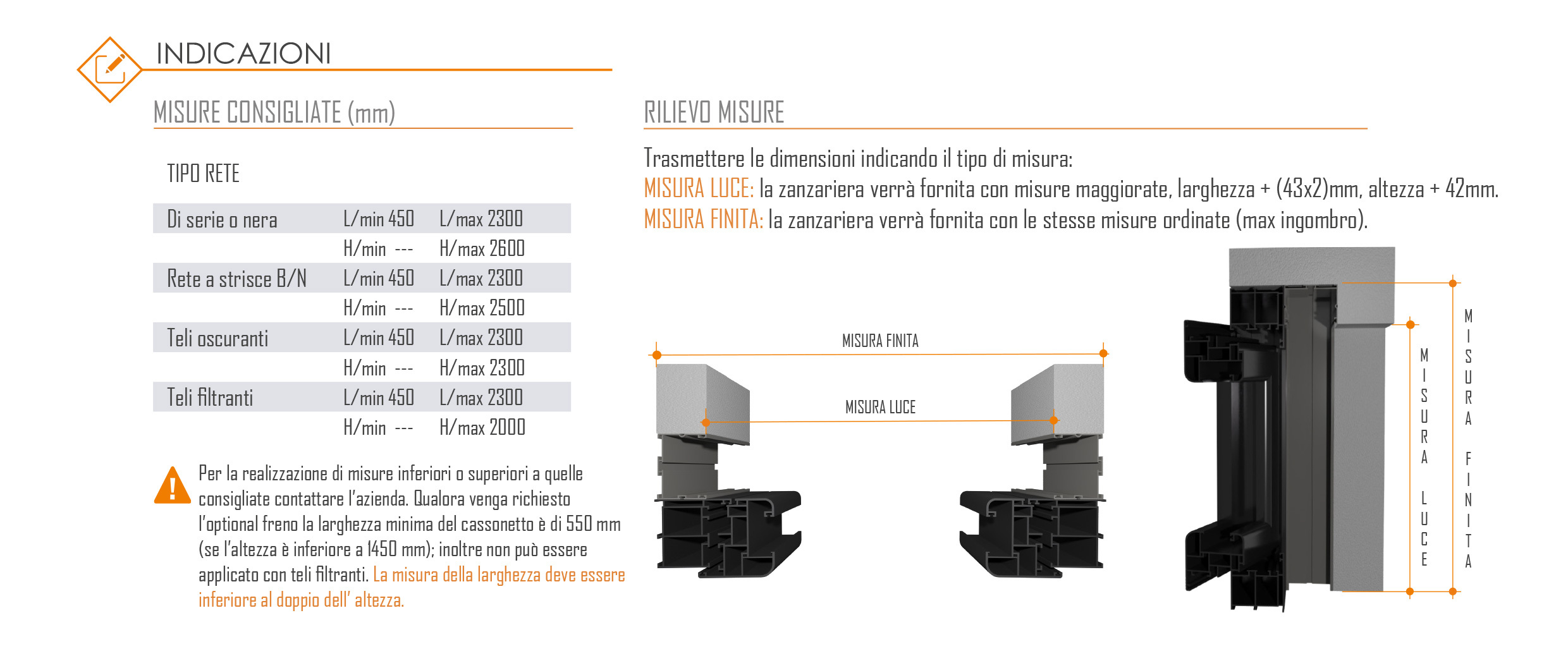 È dotata di guide telescopiche con spazzolino antivento, sistema di chiusura rotativo della barra maniglia e rete saldata con fettuccia laterale di rinforzo.