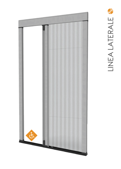È una zanzariera a scorrimento laterale con cassonetto da 22 mm. La caratteristica di questa zanzariera è la sua rete plissettata e una guida inferiore di soli 7 mm di altezza che rimuove ogni ostacolo architettonico favorendo un comodo passaggio anche a persone con disabilità motorie. L’assenza di molle di richiamo della rete permettono lo scorrimento controllato della barra maniglia, rendendola estremamente pratica. È disponibile in due versioni: