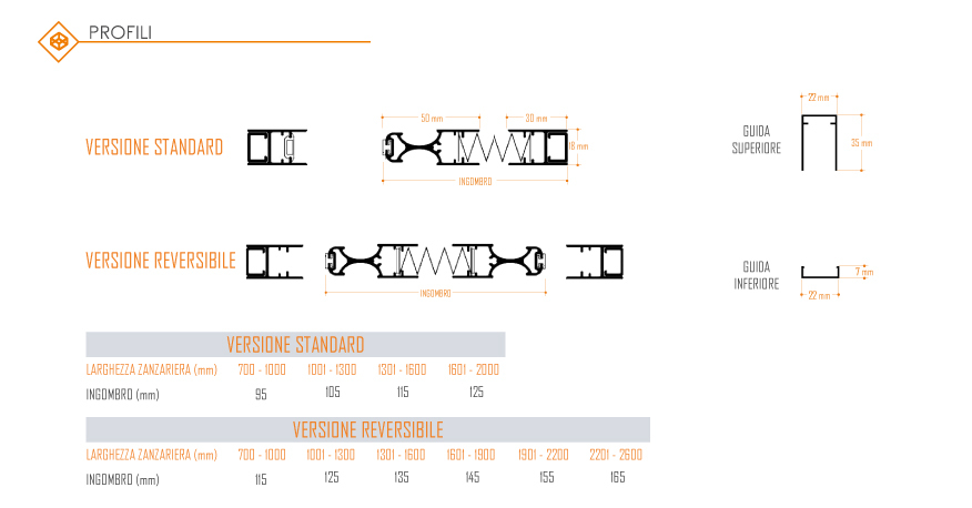 REVERSIBILE: la sua particolare struttura, caratterizzata da due profili scorrevoli, permette l’impacchettamento e l’estensione totale della rete da entrambi i lati e la rende molto indicata in abbinamento agli infissi scorrevoli