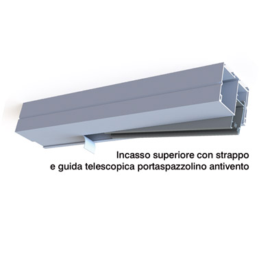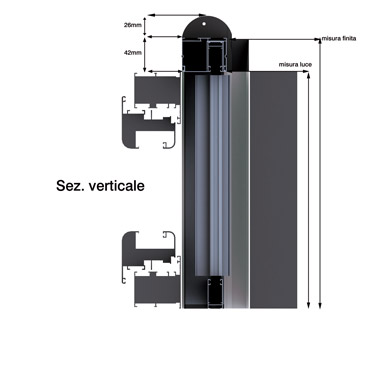 È una zanzariera monoblocco a scorrimento laterale, completa di guide per avvolgibili. Progettata per la civile architettura in quanto completamente a scomparsa.