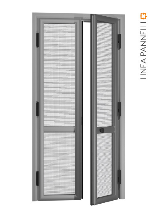 È una zanzariera ad ante battenti progettata per porte di grandi dimensioni.
